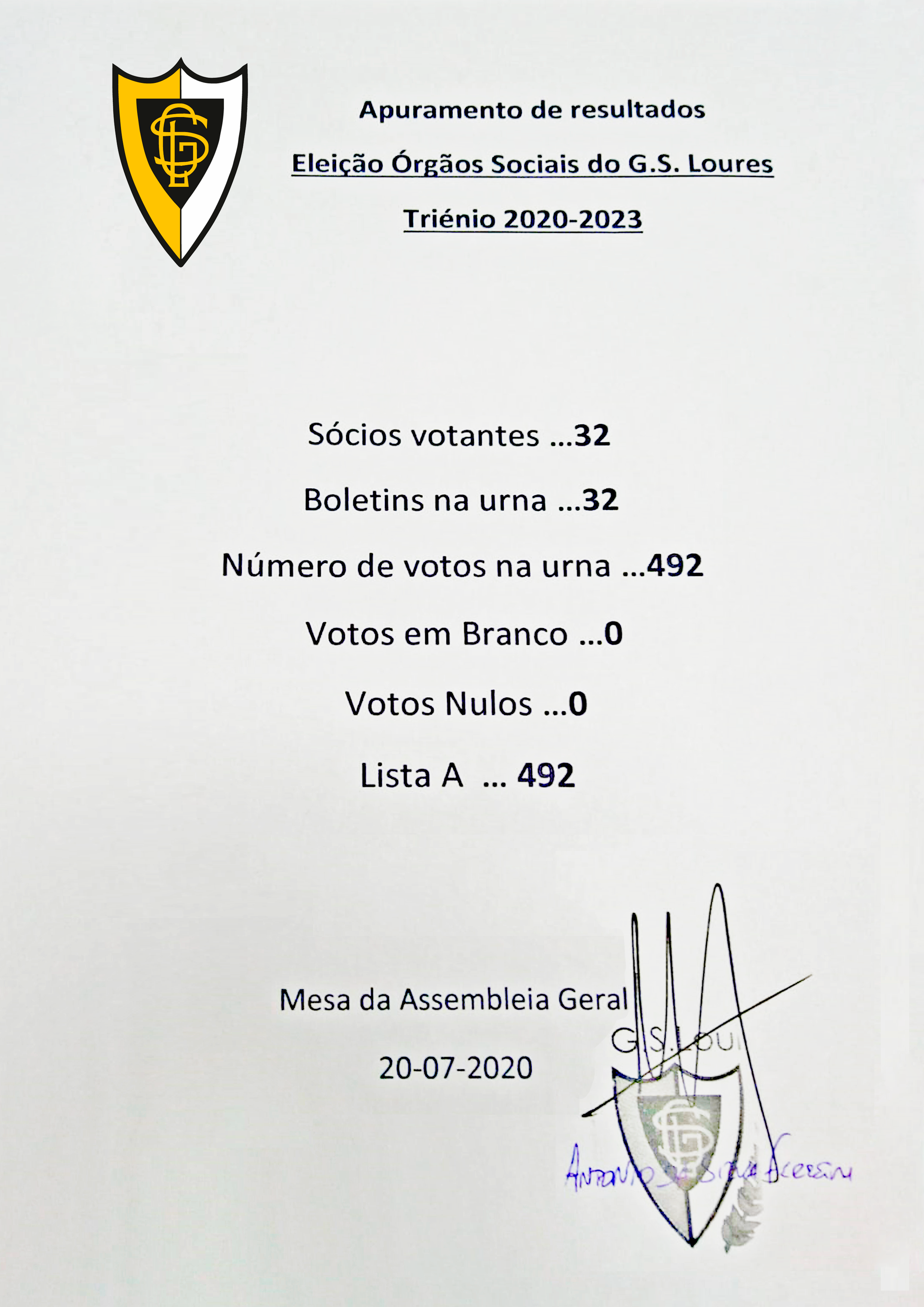 A Lista A vence as eleições para os Orgãos Sociais do GS Loures para o triénio 2020-2023.