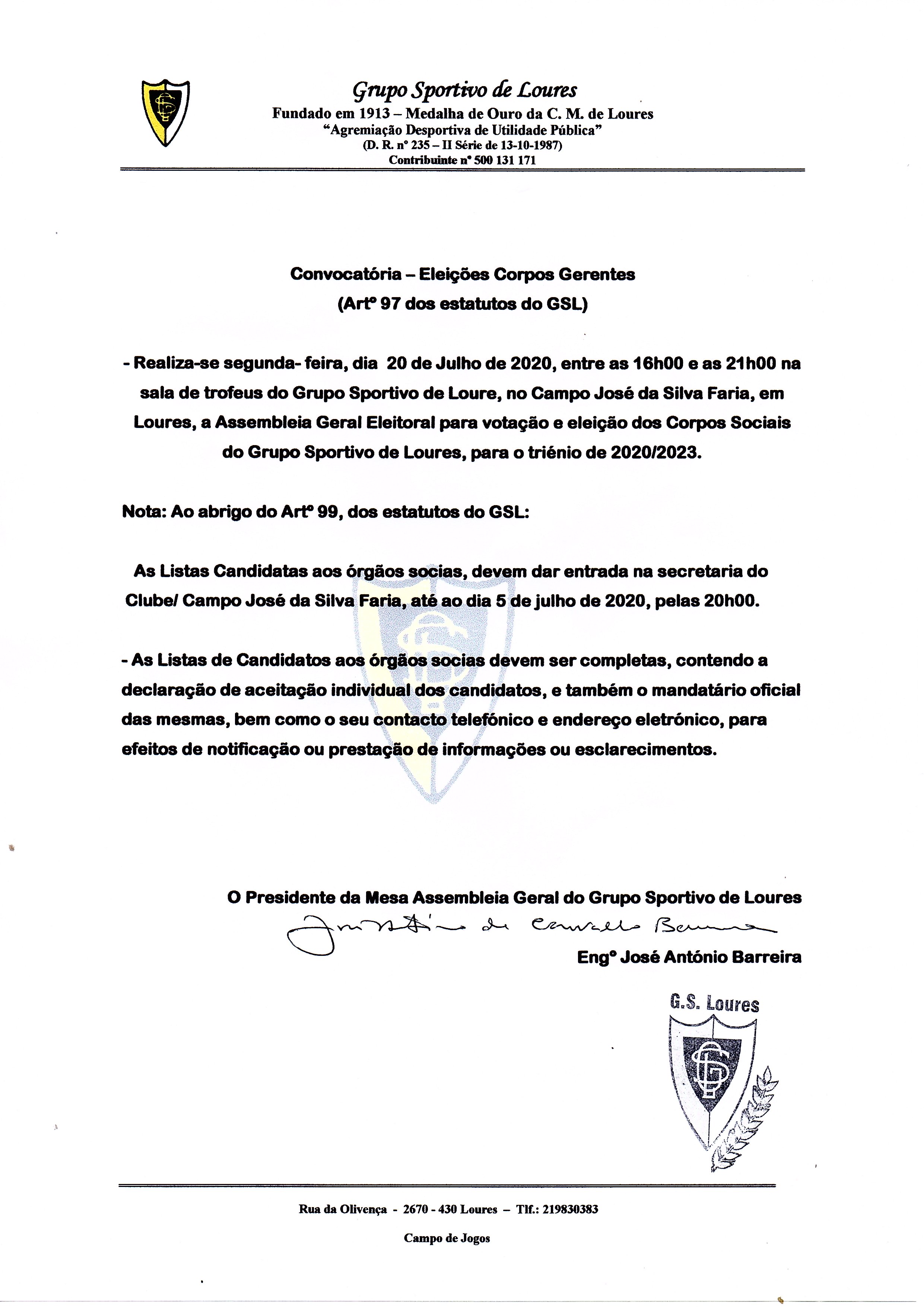 Convocatória - Eleições dos Corpos Gerentes 2020/2023